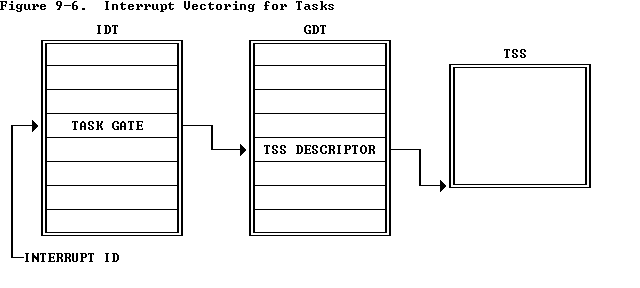 When an interrupt or exception vectors to a task gate in the IDT, a task